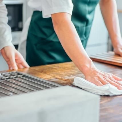 ビヤレストランの閉店作業スタッフ