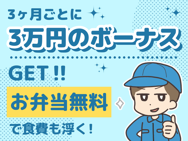 3ヶ月ごとに3万円ボーナス!お弁当無料!嬉しい特典盛り沢山◎
