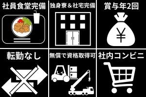 応募資格 ・フォークリフト (カウンター) 免許及び経験 必須。 ・倉庫管理、生産管理担当業務に興味がある方