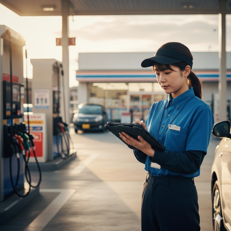 ガソリンスタンドのカード作成スタッフ
