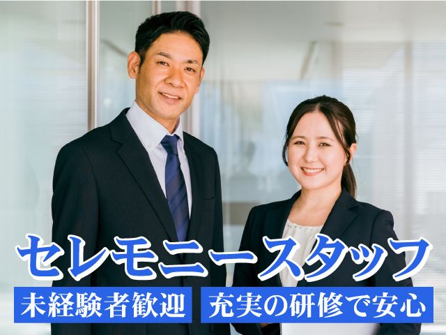 仕事内容 業務拡大につき、セレモニー会館での 葬祭施行スタッフを募集! *11月1日ベルセレマシティーホール呉羽オープン! \おすすめポイント/ ////////////////////////////////////////// ◎経験・知識は不要! ◎未経験の方も大歓迎! ◎男女活躍中! ◎中高年層まで幅広く活躍! ◎正社員雇用で安定就業 ◎ノルマ一切なし! ////////////////////////////////////////// 【勤務地】 富山市桜町 【主な業務内容】 〇セレモニー会場設営 〇参列者等の接客 〇セレモニー関係の発注、手配 〇見積書作成等の事務作業 〇アフターフォローなど <葬儀のないとき> 〇直営ホールでのお客様対応 〇事前相談対応 〇葬儀プランの見積書作成など セレモニーは覚える事が多くて大変そうに 思われるかもしれませんが、 日々の業務の中で自然と身に付くことも たくさんあります。 なので、焦らず、一つずつ、 業務に慣れていただけます。 【安心の研修制度】 当社独自の研修制度があります。 接客の経験がない方、 セレモニーの作法やマナーに自信がない方、 全くわからない方も一から学べます。 ほとんどのスタッフがゼロから始め、 少しずつ経験と知識を増やしながら 日々の業務に取り組んでいます。 また、働きながら資格取得にも取り組めるので スキルアップも図れる環境です。 <フォロー体制バッチリ!> 先輩スタッフが一から指導します。 安心して働いていただけるよう しっかりフォローいたしますので 分からない事や困った事があった時、 「こんなこと聞いてもいいのかな…」と 思った時も、いつでもご相談ください。 将来を見据えて長く安定して働きたい方、 異業種からの転職をお考えの方も歓迎! ご不明点・ご質問なども まずはお気軽にお問い合わせください。 ぜひ、ご応募をお待ちしております。 ※現在就業中の方は面接日時等ご相談に応じます ※WEBからの応募も24時間受付中!
