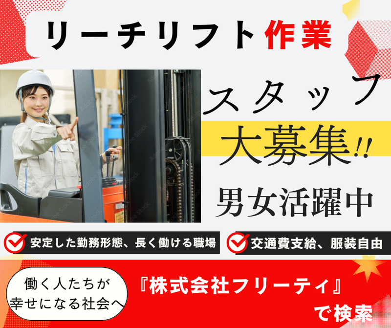 仕事内容 ✨フォークリフトスタッフを募集します✨ ✅倉庫内で、リーチリフトを使って商品の入出庫作業をお任せします! ✅扱うものは、ドラッグストアの商品全般(飲料・お菓子など)です。 服装は自由です! アクセスは、駅からスグで通勤も便利です♪