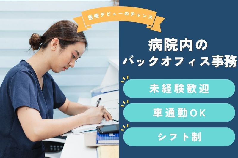 仕事の内容 ✨医療現場を裏側から支えるやりがいを実感!✨\総合病院での医師事務作業補助スタッフ募集/診察業務がスムーズに進むよう、医師の事務作業を支えるバックオフィス業務をお任せします。患者さま対応は一切なし◎医療現場でありながら、落ち着いた環境で集中して働けるのが魅力です。【主な業務内容】✅ 診断書・紹介状などの書類作成(代行印刷を含む)✅ 電子カルテへの代行入力✅ 医師からの事務依頼対応(スケジュール管理や雑務含む)✅ 保険会社提出用の書類作成補助✅ 診察サポート(記録補助や診察順の管理など)業務はすべて医師の指示に基づいて行うため、専門的な医療知識や資格は不要です。「事務経験を活かしたい」「医療業界に興味があるけど、接客は避けたい」そんな方にピッタリのお仕事です。基本的なPC操作ができればOK!はじめは先輩スタッフが丁寧にサポートするので、安心してスタートできます。病院勤務ならではの安定性と、縁の下の力持ちとして貢献できるやりがいを感じながら働ける環境です。医療現場の一員として、新たなキャリアを築いてみませんか?まずはお気軽にご応募ください◎ お問い合わせの際には下記【お仕事No】をお伝えください。 お仕事No:66698
