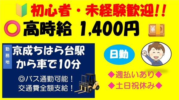 キャッチコピー 年齢関係なく男性活躍中!!時給1400円~/月収31万以上可能! 友達紹介キャンペーン実施中(紹介者10万・採用者2万) アピールポイント 給与週払い制度あり!即日・当日登録OK! 土日祝休み/未経験歓迎/交通費支給 雇用形態 派遣社員 掲載企業名 株式会社シーケル \以下のような経験をお持ちの方も活躍中/ Microsoft Word、Microsoft Excel、Microsoft PowerPoint、Microsoft Outlook、Excel グラフ、データ/文字入力、Zoomなどを用いた経験がある方 SAP、WMS、AutoCAD、HACCP、EMI、ピッキングシステムを用いた経験がある方 大型自動車、中型自動車、準中型自動車の使用経験がある方 溶接機、組立機、包装機、油圧ショベルなどを使用した経験がある方 梱包/包装、フォークリフト、オペレーター、在庫管理、入出庫管理、倉庫清掃、棚卸、溶接、塗装の経験がある方 工場、食品工場、普通倉庫、冷蔵倉庫で勤務経験のある方 調理、スタッフ、食品、惣菜、カット、花販売提供、花束/ブーケ製作提供の経験がある方 \以下資格をお持ちの方も活躍中/ 日商簿記 3級、普通自動車第一種運転免許をお持ちの方 準中型自動車第一種運転免許、中型自動車第一種運転免許(8t限定)をお持ちの方 大型自動二輪車免許、大型自動車第一種運転免許、大型自動車第二種運転免許をお持ちの方 牽引免許、一種大型特殊自動車第一種免許をお持ちの方 フォークリフト運転特別教育、フォークリフト運転業務従事者安全衛生教育、フォークリフト運転技能講習をお持ちの方 玉掛け技能講習修了、小型移動式クレーン運転技能講習修了、床上操作式クレーン運転技能講習修了をお持ちの方 大型自動車免許フォークリフト運転技能講習修了をお持ちの方 機械保全技能士、クレーン特別教育、車両系解体用運転をお持ちの方 企業情報(備考) 企業名:株式会社シーケル 事業内容:各種人材派遣 厚生労働大臣許可 (般)12-010093 有料職業紹介 厚生労働大臣許可 12-ユ-300048 各種業務請負 URL:https://www.c-kel.com/ 採用HP https://q-mate.jp/ckel/index.html 新たな一歩を応援人と企業を結ぶ株式会社シーケル