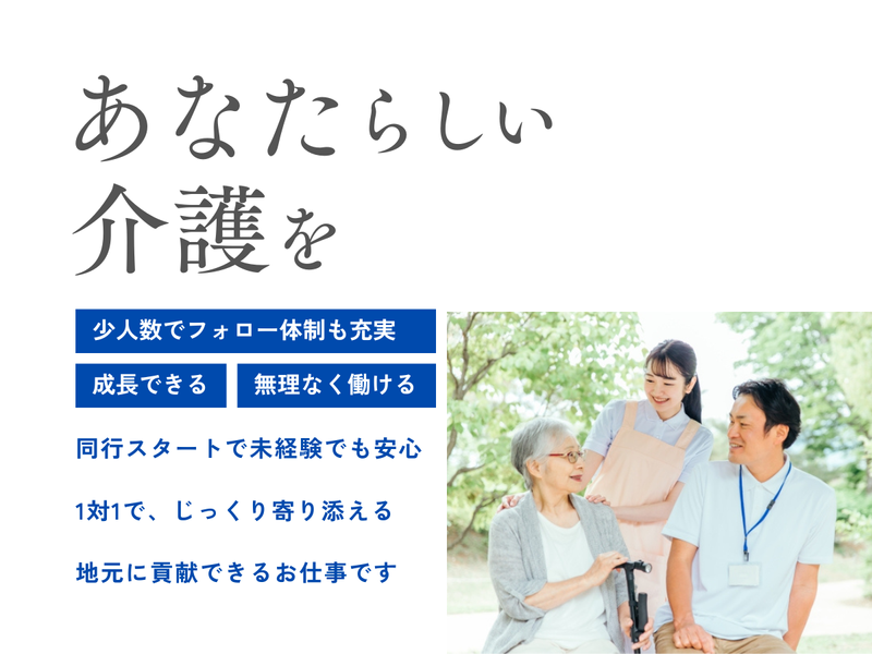 求めている人材 <必須> ・ホームヘルパー2級 または ・介護職員初任者研修修了 <歓迎> ・ホームヘルパー1級 ・実務者研修 ・介護福祉士 \こんな方におすすめです!/ ☑ 資格はあるけど、訪問介護は初めての方 ☑ 施設介護からの転職を考えている方 ☑ 子育てが一段落して正社員復帰を目指したい方 ☑ 安定した収入を得ながら、地域で働きたい方