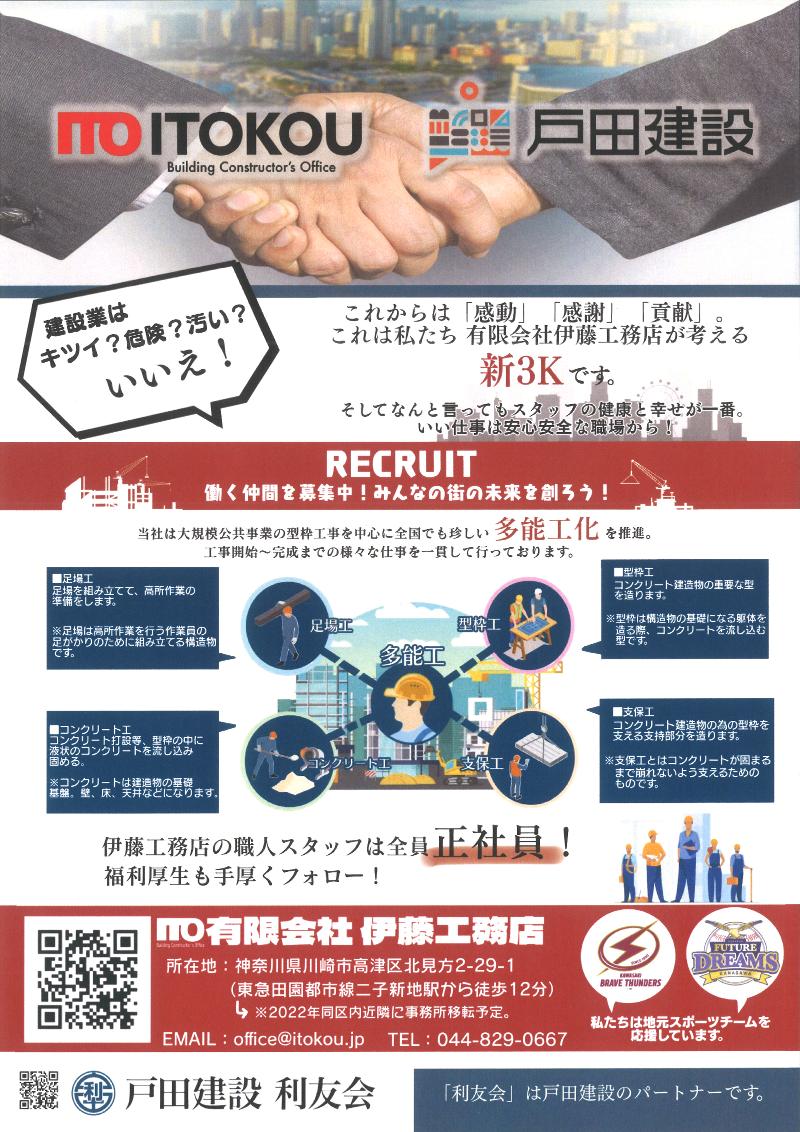 アピールポイント: ✅ 業界トップクラスを目指す給与水準 伊藤工務店は「同業種の中で年収日本一」も目標に掲げています。 学歴や年齢ではなく、姿勢・能力・経験年数を正当に評価。 平均年収も全国の中小企業平均を上回っており、 経験者のスキルはしっかり収入に反映されます。  ̄ ̄ ̄ ̄ ̄ ̄ ̄ ̄ ̄ ̄ ̄ ̄ ̄ ̄ ̄ ̄ ̄ ̄ ̄ ̄ ✅ 安心の退職金制度&長期的なキャリア形成 建設業退職金共済組合への加入に加えて、自社退職金・幹部功労金などを整備。 モデルケースでは現場責任者クラスで総額1,400万円の退職金実績。 「将来の安心」を見据えたキャリアが築けます。  ̄ ̄ ̄ ̄ ̄ ̄ ̄ ̄ ̄ ̄ ̄ ̄ ̄ ̄ ̄ ̄ ̄ ̄ ̄ ̄ ✅ ボーナス&表彰制度で日々の頑張りを還元 入社1年目からボーナス支給あり。 さらに「頑張ったで賞!!」や社内表彰など、 見える形で評価される仕組みを導入。 日々の努力がしっかり収入とやりがいにつながります。  ̄ ̄ ̄ ̄ ̄ ̄ ̄ ̄ ̄ ̄ ̄ ̄ ̄ ̄ ̄ ̄ ̄ ̄ ̄ ̄ ✅ 働きやすさ抜群!有給取得率100%/残業月5h以下 「旅行や趣味のために普通に休める」文化が根付いており、 有給消化率は100%。 残業も月平均5時間程度と全国平均より少なめで、 プライベートと両立可能です。  ̄ ̄ ̄ ̄ ̄ ̄ ̄ ̄ ̄ ̄ ̄ ̄ ̄ ̄ ̄ ̄ ̄ ̄ ̄ ̄ ✅ 健康経営優良法人2025認定 健康診断はもちろん、腫瘍マーカー検査・ 人間ドック(3年ごと)まで会社負担。 社員の安全と健康を第一に考える体制が整っています。  ̄ ̄ ̄ ̄ ̄ ̄ ̄ ̄ ̄ ̄ ̄ ̄ ̄ ̄ ̄ ̄ ̄ ̄ ̄ ̄ ✅ 社員寮・家賃補助あり!上京者も安心 家具家電付きの社員寮を完備(例:ロフト付き1R)。 上京してすぐに入居OKで、通勤用自転車貸与もあり。 遠方からの応募も安心です。(要相談)  ̄ ̄ ̄ ̄ ̄ ̄ ̄ ̄ ̄ ̄ ̄ ̄ ̄ ̄ ̄ ̄ ̄ ̄ ̄ ̄ ✅ 安全第一の現場環境 作業着・安全器具・備品はすべて会社支給・貸与。 高品質な装備を整え、事故や怪我を未然に防ぎます。  ̄ ̄ ̄ ̄ ̄ ̄ ̄ ̄ ̄ ̄ ̄ ̄ ̄ ̄ ̄ ̄ ̄ ̄ ̄ ̄ ✅ チームワークと交流を大切にする社風 BBQ大会・忘年会・協力会社も含めた、社内懇親イベント多数。 LINEで誕生日プレゼントやお疲れ様クーポンを配布するなど、 「食べること・遊ぶことも全力」の明るい雰囲気です。