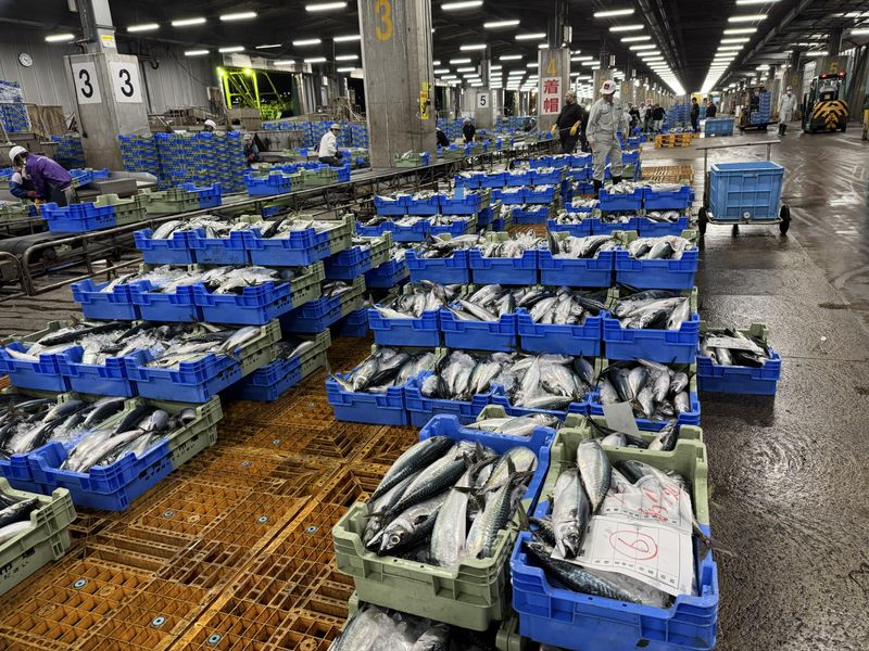 鮮魚の荷卸し 積み付け リフト作業
