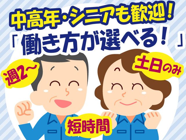仕事内容 〈このお仕事のPOINT!〉 ◎中高年・シニアも歓迎! ◎週2日~勤務OK! ◎土日のみ・平日3日など ◎2部門のパート・アルバイト同時募集 ◎男女活躍中! ▼パートさんの声▼ ◎パートAさん 「固定の曜日でシフトに入っています。 働き方の相談に乗ってもらえて助かりました!」 ◎パートBさん 「パートですが、評価が昇給としてしっかり 反映されるので、やりがいがあります!」 ー 【お仕事内容】 クリーニング工場での カンタンな仕分け・機械投入のお仕事です! ラインでの作業なので、 「〇曜日の午前中は固定で入れます!」 のように固定のシフトで入れる方優遇! ライン作業の管理など、できることが増えれば時給もぐんぐんUPします ー▼部門別!詳しいお仕事内容▼ー ①入荷部門 旅館やホテルから回収された 浴衣やシーツの運び入れ&仕分けをする部門 ここでザックリと仕分けを行って クリーニングの工程に渡します! 男性活躍中の部門です! ②仕上げ部門 クリーニングが終わった衣類を 「製品」にしていく部門です。 衣類は機械が自動でパタパタと たたんでくれるので、その下準備をする お仕事になります。 カンタン作業、で重いものも扱いません! 女性活躍中の部門です! 工場見学も随時受付中です! 面接の際に希望する部門があれば さらにお仕事の詳細をお教えしますので、 お気軽にお問合せ下さい! 皆様のご応募お待ちしております!