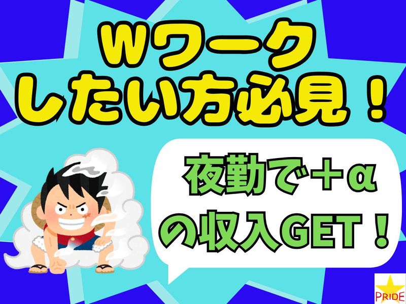 1日6時間の夜勤/金土or土日の週2日/Wワーク可【102】