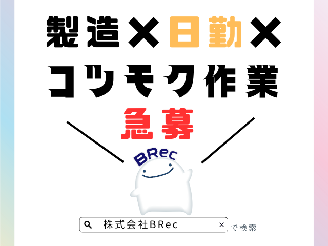 募集要項 職種 医療装置の組立て 雇用形態 派遣社員 仕事内容 マニュアル完備で迷わず作業できる 難しい判断や専門知識は不要 少人数で落ち着いた作業環境 ◎工場勤務や組立作業が初めての方も安心してスタートできます。 【職場環境・会社情報】 作業着:BRec支給 靴:各自準備 ロッカーあり 冷暖房完備で一年中快適 駐車場から会社まで徒歩3分以内 【仕事の難易度】 ★☆☆(3段階中) 手順書通りに進めるシンプル作業です。 ■こんな方におすすめ もくもく作業が好き 手順通り進める作業が得意 医療分野の仕事に興味がある 安定した環境で長く働きたい まずは職場見学だけでもOK! 応募=即決ではありませんので、 少しでも気になった方はお気軽にご応募ください。