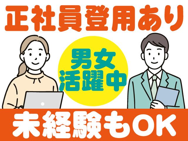 仕事内容 正社員を目指せます!未経験OKの事務作業! 最初は補助業務からスタートなので安心です! 日勤固定!20代~40代の男女活躍中の職場! <紹介予定派遣!正社員登用あり!> *派遣期間6ヵ月後、双方の合意があった場合 のみ、先方直接雇用となります。 *直接雇用後(正社員)の賃金につきましては 面接時にご案内いたします。 <主なお仕事内容> 大手食品工場内で、事務作業をお願いします。 (作業の一例) ・既存の取引先の受注・発注業務 ・電話応対 ・パソコン入力作業(Excel) など。 パソコンの基本操作が出来ればOK! 日勤固定!営業スタッフのサポート業務に なります。 最初は補助業務からスタートしていただく ので、事務経験のない方、ブランクのある 方も安心してご応募ください。 まずは、派遣でスタート! 正社員へステップUPできます。 <おすすめポイント> ・正社員登用あり ・人気の事務作業 ・日勤固定なのでスケジュールが立てやすい ・勤務時間:8:00~17:00(実働7.5h) ・パソコンの基本操作が出来ればOK! ・未経験OK!ブランクOK! ・補助業務からスタート ・電車通勤OK!最寄り駅より徒歩14分! ・日払い・週払いOK!(最短翌日振込可) <職場環境> *20代~40代の男女活躍中 *私服(オフィシャルカジュアル) *食堂完備 *仕出し弁当注文可(1食300円) *休憩所完備 *個人ロッカー完備 *喫煙所完備(完全分煙) <勤務地> ・北海道白糠郡白糠町 ・車通勤OK ・無料駐車場完備 ・電車通勤OK ・最寄り駅/JR西庶路駅より徒歩14分 まずは、お気軽にお問合せ下さい。 フリーダイヤル 0120-127-188 (ヒューマンアイ釧路営業所)