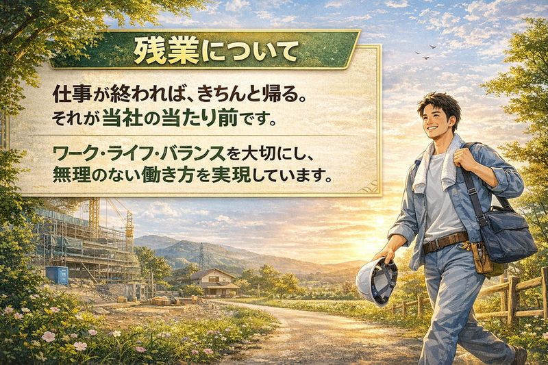 【アピールポイント】 【家族時間が増える転職を。】 当社は完全週休2日制、基本定時退社。 さらに家族で住める一軒家を会社が用意。 働き方も生活も、無理なく続けられます。 ・資格取得費用は全額会社負担 ・賞与年2回、昇給年1回で安定収入 ・GW、夏季、年末年始の長期休暇あり