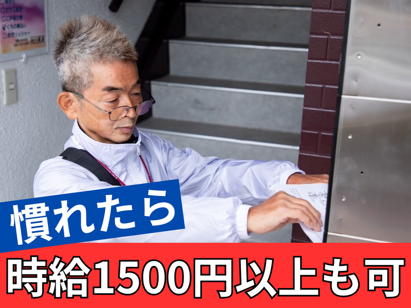 職場環境 50~70代の男女スタッフが活躍中。 シニアや中高年、60歳以上の方も、自分のペースで無理なく働いています。 配布するチラシはご自宅までお届けしますので、わざわざ取りに行く手間はないですし、 天気や時間を気にせず好きなタイミングで働けるのも嬉しいポイント。