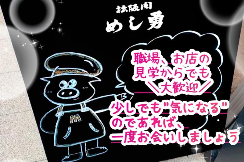 アピールポイント: 「"新"めし勇」に備え新しい仲間を募集! └ 2名募集!! 教育体制もしっかり整えており習熟度に 合わせて丁寧に研修を行います。 未経験からでも一歩ずつ着実に ステップアップできる環境でお迎えします! "" リニューアルしたての清潔&綺麗な事務所! └ 快適環境! 今年予定している店舗全体の改装に先駆け、 事務スペースの改修工事が完了したばかり。 「お肉屋さん」のイメージを覆す、快適で 気持ちの良い職場環境をご用意しております! "" 15名中8名が女性スタッフ!バランス◎ └ 相談しやすい、馴染みやすい! 半数以上は女性スタッフです! 日頃から意見交換が活発で、 困ったことがあればすぐに誰かに 相談できる「風通しの良さ」が自慢! "" 「基本残業なし」×「駅チカ&車通勤OK」 └ ワークライフバランス充実 残業は基本ないため仕事終わりの買い物や 家事や趣味の時間も確保しやすいです! 最寄り駅から徒歩圏内という好立地に加え 無料駐車場を完備しているため何かと便利◎ "" 昇給実績「高」頑張りや意見をしっかり反映 └ 還元率\高水準/ 安定した経営基盤があり、 前年度の昇給実績ベースも「高」 勤続年数に関係なく、スタッフの 提案や改善案が良ければ積極的に 取り入れる柔軟な社風です。  ̄ ̄ ̄