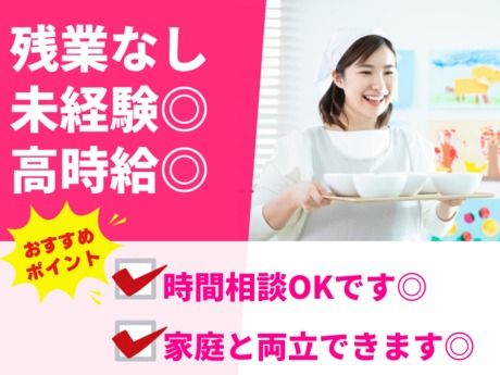 仕事内容 \ここがポイント/ ・未経験から始められる調理サポート♪ ・高時給1400円!しっかり稼げる! ・時間相談OK♪ライフスタイルに合わせて働ける! ・残業なし!定時退社で家庭や趣味も充実♪ ・特別養護老人ホームでの安心勤務◎ *・。・。*・。・。*・。・。* <仕事内容> \家庭の延長でできる調理のお手伝い♪/ 特別養護老人ホームにて、入居者様に提供する食事の調理補助をお願いします! 具体的には、食材のカットや下ごしらえ、味付け・仕上げ・盛り付けなど。 調理の基本がわかればOK♪難しい調理技術や特別な資格は必要ありません。 お仕事はチームで行うため、わからないことがあってもすぐに聞ける安心の環境。 調理未経験の方でも、丁寧なサポートがあるのでご安心ください! また、5時半~18時半の間で勤務時間の相談が可能! 短時間勤務もOKなので、家庭との両立を目指す方にもピッタリです◎ 残業は一切なし!決まった時間で終わるので、自分の時間も大切にしながら働けます♪ *・。・。*・。・。*・。・。*