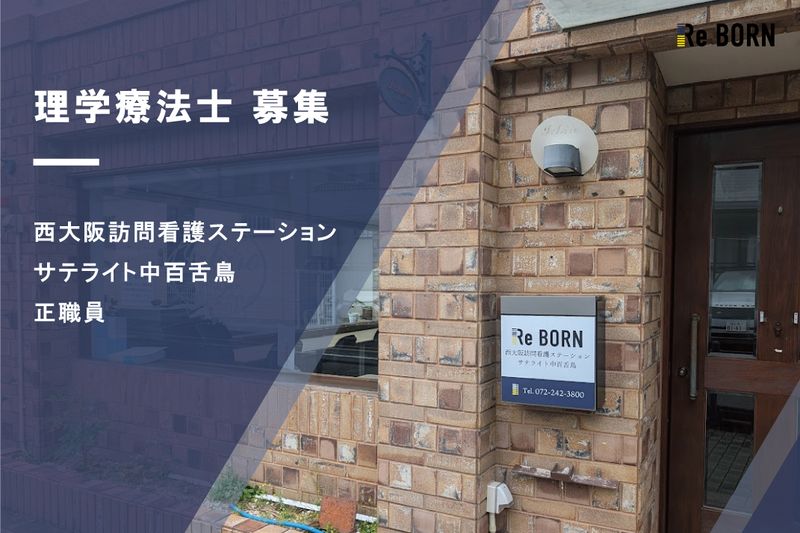 概要・業務内容 リボーングループには、幅広い経験年数・多様な経歴を持つ常勤セラピスト/看護師が130名以上在籍し、大阪府下16拠点でサービスを提供しています。 日々、自己研鑽に励み、各地域で高品質な在宅サービスを提供して頂ける方、是非お越し下さい。 私たちは「働くスタッフ」「ご利用者様」「ステークフォルダーの皆様」の3つの満足度を高める為、仕事の頑張りや成果が正当に評価される報酬制度を準備しています。 在宅での勤務経験は問いません、これまでに培われた人間力、専門性を活かして、ご活躍下さい。 また、正社員のみでなく、パート/アルバイトの方も随時募集しております。 ・給与: 時給1,800円~2,600円及びベースアップ手当月額2,500円(件数制もあり) ・勤務日数: 3日~/週 ・勤務時間: 16時間〜/週 ご応募頂きましたら、簡単な書類審査後、面接のご案内をさせて頂きます。(面接の前に会社説明・施設見学をご希望の方は、その旨、ご相談下さい) 皆様のご応募、心よりお待ちしております。