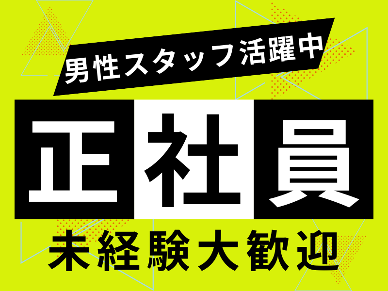 求める人材: \20~30代の男性スタッフが活躍中!/ ・未経験から正社員を目指したい ・自分にもできそう!と思ったから ・とりあえず話を聞いてみたい しっかりした応募理由がなくてもOK! 【履歴書不要・スマホ面接OK】 内定まで来社不要でらくらく* お気軽にご連絡くださいね!