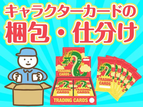 仕事内容 キャラクターカードの梱包・仕分け <お仕事内容> キャラクターカードの梱包・仕分けのお仕事をお任せします☆ *商品を袋に入れて折れないように梱包 *梱包された商品を出荷ごとに仕分け など 社員が常駐しているのでわからないこともすぐに聞けて安心◎ 未経験の方でも丁寧なサポート体制です♪ 扶養内、Wワークも歓迎! モクモク作業が好きにもぴったり☆彡 ▼▼▼▼▼▼▼▼▼▼▼▼▼▼▼▼▼▼▼ スキマ時間や空いている日を有効活用できる! 【スポット】 【長期】 【レギュラー】 など 希望の働き方を叶えられちゃいます! まずはお気軽にご応募ください! \登録までの流れ:たったの3STEP♪/ (1)『応募する』ボタンをタップ!*24時間OK! (2)メール記載のURLより登録会の予約をお願いします! (3)面談でしっかりご説明します!これで登録完了♪ ≪まずはかんたん登録×♪WEB面接OK◎≫ ☆採用率99.9%(まずは簡単Web登録♪) ☆お友達との応募も大歓迎! ☆紹介可能案件数は業界TOPクラス! \アピールポイント♪/ ★未経験歓迎 ★経験不問 ★学歴不問 ★年齢不問 髪型も髪色もピアスもネイルも、 基本的にはぜーんぶ自由♪ あなたの好きなスタイルでオシゴト可能です☆ ▼こんな方活躍中▼ ・授業終わりの学生さん ・かけもちのフリーターさん ・Wワークの方 ・お子さまが学校に行ってる間だけ ・子育てが落ち着いた主婦(夫)さん 若手~中高年まで様々な世代の方が和気あいあいと活躍中♪ ▼超・カンタン軽作業が盛りだくさん▼ 「コツコツ作業が好き!」 「ルーチンワークが好き!」 「モクモクと静かな作業が好き!」 アパレル系~コスメ、軽作業から倉庫、ピッキング、梱包、検品、ラベル貼り、タグ付け どのお仕事もすぐに覚えていただけるカンタンなお仕事ばかり♪ \働いた分はすぐGET☆彡/ 「あと1日分だけ稼ぎたい!」 「月々の収入をもう少しだけ増やしたい!」 「お出かけするこの日の分を稼ぎたい!」 「効率よく収入を稼ぎたい」 そんな方達が多数活躍中♪ 初めての派遣、Wワーク、副業の方も日払い・週払いですぐピンチが乗り切れます!