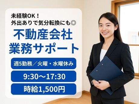 【週5】未経験から不動産業界にチャレンジ!外出多め◎17:30まで/火曜・水曜休み