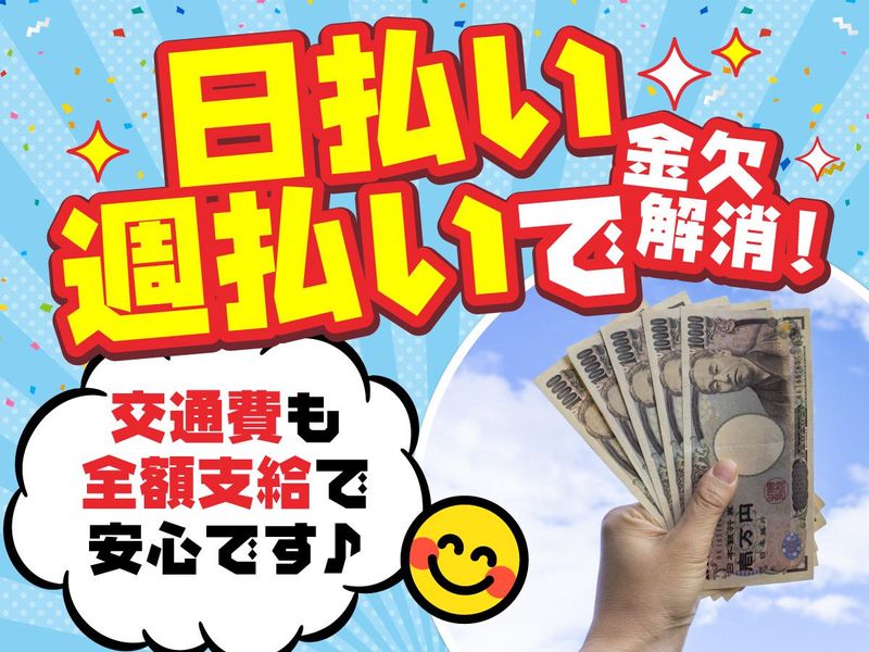 求めている人材 ★「夢は諦めたくない」そんなフリーターさん、大歓迎。 ★「年金だけじゃ足りない・・・お小遣いを稼ぎたい」 そんな想い、ここで叶えてほしい。 ★未経験でも問題なし。むしろ9割がゼロからのスタート。 ★学歴・経験・性別、一切問いません。 <<こんな方も大歓迎です!>> ★今の生活にプラスαの収入が欲しい方。 ★日払いで“今日働いた分が今日のお金になる”働き方をしたい方。 ★生活を立て直したい/新しい環境で再スタートしたい方。 ★副業・Wワークで効率よく収入UPしたい方。 ★もちろん経験者も即戦力として大歓迎!経験者優遇あり。 ★ブランクあってもOK。「やってみよう」の一歩を全力応援。 ★「ちょっと気楽に働きたい」「無理なく続けたい」そんな方にもピッタリ。 【活かせる経験】 接客/販売/工場作業/建設現場/軽作業/清掃/サービス業/倉庫作業 フォークリフト免許/準中型・中型免許 など ※もちろん「まったくの未経験」でも問題なし!