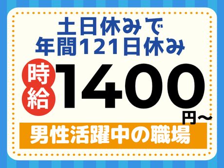 休日 土日休(会社カレンダー) ※年に1回程度土曜出勤の可能性あり *年間休日121日 *GW・お盆・年末年始休暇あり