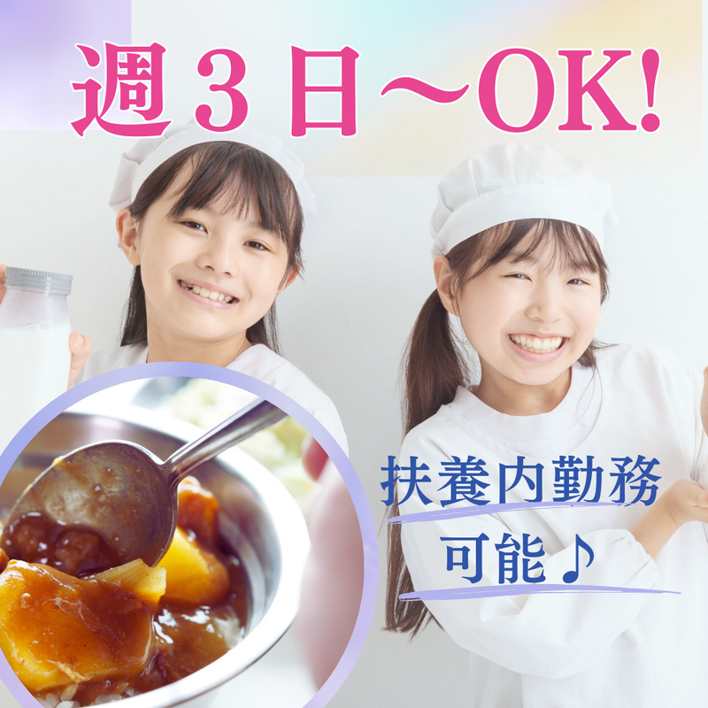 仕事内容 ━━━━━━━━━━━━━━━━━ ✨4/1から始まる新しい現場!✨ ✨学校給食の調理サポート職を募集✨ ━━━━━━━━━━━━━━━━━ 4/1から始まる現場ですが、 希望があれば3月中に別現場での 勤務も可能です(必須ではありません) 【おすすめポイントはコチラ】 ⭐週3日~OK/扶養内・副業可 ⭐土日祝休み+大型連休あり! ⭐志望動機は必要ありません! ⏩チーム制で安心の給食調理  ̄ ̄ ̄ ̄ ̄ ̄ ̄ ̄ ̄ ̄ ̄ ̄ ̄ ̄ 野菜の切り込み、配膳・洗浄など 調理・配食業務をお任せします。 分業制なので一人に負担が 集中することはありません◎ ⏩資格不要・家庭経験が活きる  ̄ ̄ ̄ ̄ ̄ ̄ ̄ ̄ ̄ ̄ ̄ ̄ ̄ ̄ 調理補助なので資格は不要。 包丁が苦手な方への フォロー体制もあります◎ 普段の家事経験を そのまま仕事に活かせます! ⏩家庭と両立しやすい勤務  ̄ ̄ ̄ ̄ ̄ ̄ ̄ ̄ ̄ ̄ ̄ ̄ 9:00~15:00のシフト制で 午後は家事や買い物の時間に◎ 平日のみ・週3日~相談OK! 土日祝+長期休暇もあります。 ⏩主な1日の流れ  ̄ ̄ ̄ ̄ ̄ ̄ ̄ ̄ ▼09:00~ 業務開始 └食器のセッティングや仕込み作業 ▼10:00~ 調理開始 └社員の調理作業をお手伝い ▼10:30~ 配缶作業 └クラス毎に給食を分ける ▼11:40~ 給食をクラスへ └クラスワゴンで運びます ▼12:30~ お昼休憩 └給食を食べられます! ▼13:00~ 洗浄作業 └返却された食器等の洗浄 ▼15:00 業務終了 <その他> ✅車通勤OK ✅制服貸与(洗濯は現場対応)