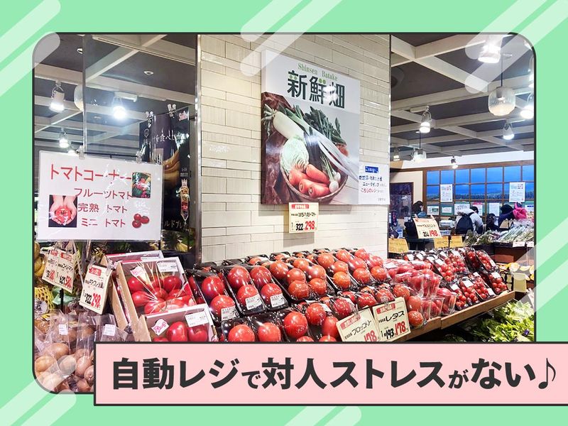 仕事内容 【お仕事内容】 スーパーの自動レジでのお仕事です。 商品をバーコードで「ピッ」と読み取り、あとは機械におまかせ! 未経験の方でも安心スタートできます。 ※金銭授受はこちら側で行います。 現在も「高校生・大学生・フリーター・主婦(夫)」など、幅広い年代が活躍中! バイトデビューの方も、しっかりサポートします♪ ▼ここがポイント!▼ ⭐週2日・1日3h~OK! 学校や家事との両立もラクラク ⭐駅から30秒! 雨の日も通いやすい◎ ⭐扶養内勤務OK(主婦(夫)の方に安心) ⭐テスト期間やお子さんの行事でのお休みも柔軟対応 ⭐自動レジだから接客もシンプル&安心 ⭐短時間・Wワークも可能 ー <シフト例> 高校生:学校帰りに 17:00~21:30 大学生:授業のない日に 13:00~18:00 フリーター:13:00~21:30(休憩あり) ライフスタイルに合わせた働き方が可能! ー 関東近県に展開する「新鮮畑」で 新スタッフ大募集!! 旬な商品を取り入れ、鮮度バツグン! リピーターや常連のお客様も多く 落ちついた雰囲気のお店です♪