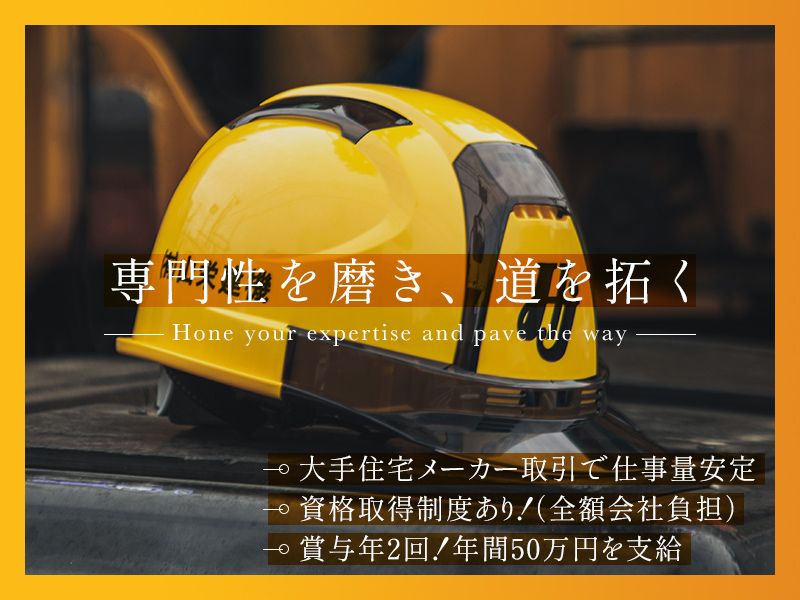 アピールポイント \\この求人の魅力!// ✅大手住宅メーカー取引で仕事量安定 ✅資格取得制度あり!(全額会社負担) ✅賞与年2回!年間50万円以上を支給! ✅家賃手当あり&家族手当あり(規定あり) ✅土日祝休み&基本残業なし ●職場環境について 現在30代40代を中心に10名のスタッフが活躍中! 気さくで面白い方が多く、相談しやすい環境! 「みんな」が仲間と思いやりを大切にしています。 人間関係に悩むことはありません♪ >>未経験入社Hさん(20代) 未経験だったので初日は不安でしたが、 その不安は研修中に解消されたので、 安心してデビューできました! 少しでも気になった方は… \お電話でのご質問も受付中!/ ・電話番号:03-3765-6801 ※営業電話お断り※