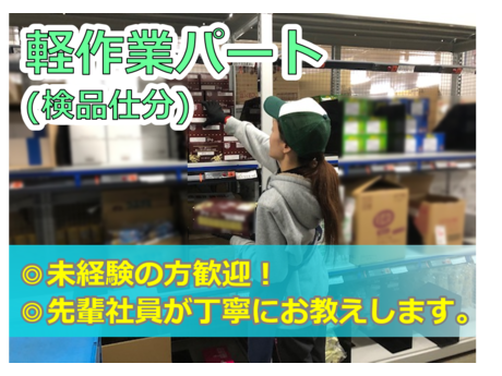 お仕事内容 倉庫内にて家庭用塗料のピッキング、 仕分け作業を行っていただきます。 発注のリストに従って倉庫内の棚から取り出し、 納品先別に製品を箱詰めし、梱包していきます。 マニュアル通りに作業を進めていく簡単なお仕事です。 納入されてきた製品を検品するときは、 ハンディーターミナルを使用します。 (使い方はスマホよりは簡単ですのでご安心ください) 取り扱う商品は大手メーカーのペンキで、 家庭用の小さめサイズのペンキ缶がほとんどです。 一番重い製品ですとペンキの一斗缶20kg程がありますが、 1人1人に合わせて行える作業を行ってください。 ブランクがある方や未経験者歓迎です。 適度に体を動かすので、運動不足の方にもピッタリ! 初心者の頃は、研修やマニュアルで丁寧に 指導するので未経験の方やアルバイトデビュー、 ブランクのある方でも安心して始めていただけますよ! 常に声をかけあい、楽しくいきいきと 仕事ができる職場の環境作りを目指しています。 困ったことや、悩み事があればすぐに相談してくださいね!