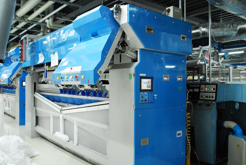 クリーニング工場でのシーツ仕上げスタッフ