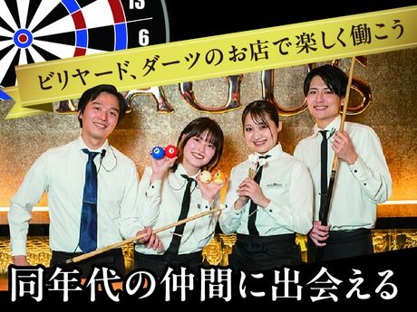 仕事内容 「遊びも、勉強も、バイトも、全部充実させたい!」 そんな方にぴったりのアルバイト、あります! ダーツやビリヤード、カラオケが楽しめる「BAGUS」で、ちょっぴり大人な空間で働いてみませんか? ■■学業優先OK!柔軟シフトが魅力!■■ ★週1日~・6時間~OK! 授業やサークル、プライベートの予定に合わせて働けます!「試験前はお休みしたい…」もちろん大丈夫!試験期間やサークルイベント、学校行事に合わせて、シフトはしっかり調整します。 ★副業・Wワークや扶養内勤務も歓迎! 平日のみ、土日祝のみなど、あなたのライフスタイルに合わせた働き方が可能です♪ ■■高時給&嬉しいメリット!■■ ★時給は1,300円~! 深夜勤務なら1,625円にアップするので、効率よく稼げます。 ★まなかい&従業員割引でお得に! 「まかないで食費の節約になってる!」とスタッフから好評です◎全国300店舗以上あるグループ店で使える30%OFFの従業員割引もあり!バイトがない日もお得に楽しめちゃいます♪ ★給与の一部週払い制度あり! 「今月ちょっとピンチ…」そんな時も安心!給与の一部を週払いできる「即給」サービスを導入しているので、急な出費にも対応できます◎ 【同年代の仲間と、最高の大学生活を!】 10代・20代の学生さんを中心に、10代~40代のスタッフが活躍中! 「新しい友達を作りたい」「大学生活を充実させたい」そんなあなたにもぴったりです♪ 【バイトデビューも大歓迎!】 今働いているスタッフのほとんどが、未経験からスタートしています。 最初は分からなくて当たり前!先輩たちが丁寧に教えるので、安心してください。積極的に質問できる人は、早く仕事を覚えられますよ。 「学業と両立したい」「新しい自分を見つけたい」「将来に役立つ経験を積みたい」 【将来に繋がる出会いがあるかも!】 BAGUSはまさに“大人の社交場”。お客様も、若手起業家や芸能関係者など、普段なかなか出会えないような素敵な方が多いです。 「お客様に気に入られて、そのまま就職先が決まった!」なんて先輩もいるんですよ。 BAGUSでの出会いは、あなたの将来にとって大きな財産になるはずです! 【具体的な仕事内容】 ・ 機械操作案内 ・ ご案内 ・ 注文取り ・ 料理運び 一緒に楽しく働いてくれる仲間を大募集! ≪飲食店での経験者大歓迎!≫ カフェ、ファミレス、居酒屋、ラーメン店、イタリアンなど、前職のジャンルは問いません。ホール・キッチンはもちろん、調理補助やバリスタ、バーテンダーの経験も活かせます。ブランクがあっても大丈夫!あなたのスキルを即戦力として評価します。
