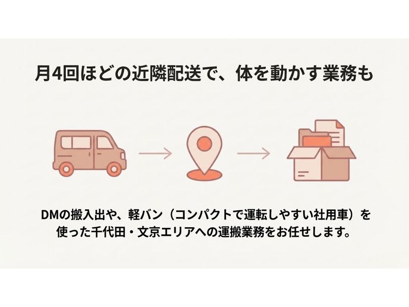 【未経験OK】DM発送・事務スタッフ(軽バンでの近隣配送あり)