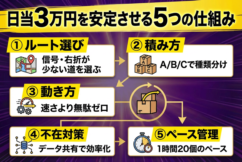 仕事内容: ※お時間ない方は太字のみお読みください ───────────────────────── 「誰でも月70万円!」、、、とは言いません。 でも弊社には、 【未経験でも最短で月70万円が狙える仕組み】 があります。 ───────────────────────── 結論、稼働のモデルはこれです。 ⏩️日当3万円×月24日稼働=72万円⭐ (※180個配達で3万円になります。) 仕事の内容は至って一般的な配送業務。 大田区の固定エリアで軽自動車に乗って、企業や個人宅宛に片手で持てるサイズがメインの段ボールを配達していただきます。 問題は、─どうやって日当3万円を安定させるか。 そのおおまかな手順を、未経験の方が特に引っかかりやすいポイントを交えて公開します。 (入社後に更に細かく教えさせていただきます!) ⇩ ⇩ ⇩ ⇩ ⇩ ⇩ ⇩ ⇩ ⇩ ⇩ ⇩ ✅STEP①:最短ルートを選ばない 「信号が少ない/右折が少ない/停めやすい道」を選んだ方が最短ルートで行くより回転率が1.5倍上がります。 ⇨このルートはすでに構築済です!⭕ ✅STEP②:種類分けした荷物の積込み 「前半A/中盤B/後半C」で分けて、重い荷物の上に軽い荷物を載せるイメージで積み込みます。 ✅STEP③:速く走らず、無駄を減らして動く 走るスピードは関係ありません。(むしろ危ない。) 一度停めたら周辺にまとめて配達します。 ✅STEP④:不在・再配達が多い住所の共有 今まで対応した配達先のデータがあるのでそれを基に配達先のルートを設定します。 ✅STEP⑤:ペース管理と締め作業 ・1日180個なら休憩・積込み時間を除いて9時間 ⇨1時間で20個(10分で3個)のペースを守って配達 ・詰まった建物、迷った場所をメモして記録 ⇨改善が繰り返されるので非常に有効的です✨ ⇩ ⇩ ⇩ ⇩ ⇩ ⇩ ⇩ ⇩ ⇩ ⇩ ⇩ 実際にこれらを守って走っていた未経験の方は、 初月に45万円、2カ月目で59万円、 ▷▷▷3カ月で71万円を達成!⭐ 未経験だと不安なのは当たり前です。 だからこそ、闇雲に走らせず”仕組み”を共有します! 免許証1枚で即日稼働OKです! (車は弊社から貸し出しできます⭐) ─────────────────────────