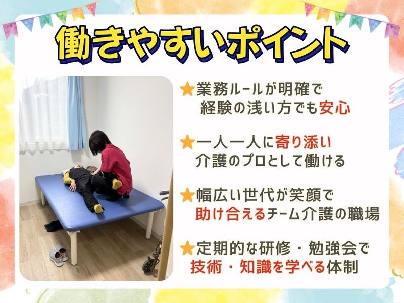 アピールポイント: ⌒⌒⌒⌒⌒⌒⌒⌒⌒⌒⌒⌒⌒⌒⌒⌒⌒⌒⌒ 「住み慣れたご自宅で、 夢のある暮らしをいつまでも」 の理念をもとに、 ご利用者様一人ひとりの 「ゆめをかなえる(Yell)」 ケアや取り組みを大切にしています。 ⌒⌒⌒⌒⌒⌒⌒⌒⌒⌒⌒⌒⌒⌒⌒⌒⌒⌒⌒ 「最期まで好きなことを続けたい」 「家族と過ごしたい」など 利用者様の想いに寄り添い、 その人らしい暮らしをかなえる仕事です✨ ▼「かなえて」きた「ゆめ」▼ ★入館時間に制限無く家族に会える ☆コロナ渦でも看取りは家族と一緒がいい ★胃ろうでも嚥下訓練を行って食べれるものは食べたい ☆リハビリを頑張って家族と外食や結婚式に参加したい ★訪問デパートで好きなものを買っておやつを食べたい 等 ▲ななゆめは縟瘡ゼロ宣言ホーム▲ ご利用者様に縟瘡は絶対につくりません!! 多職種連携したポジショニングチームで徹底的に管理 3ケ月に1度は縟瘡チェックを行い皮膚状態を観察し評価 チームプレイで縟瘡に立ち向かいます!!