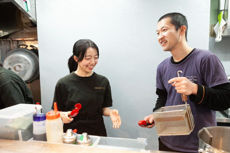 職場環境 在籍するスタッフは男女半々で40人。 アルバイトは学生さんが多いですが、 飲食店で独立したい方や、芸人さん、 バンドマン、役者を目指す方など 様々なスタッフが活躍中です!