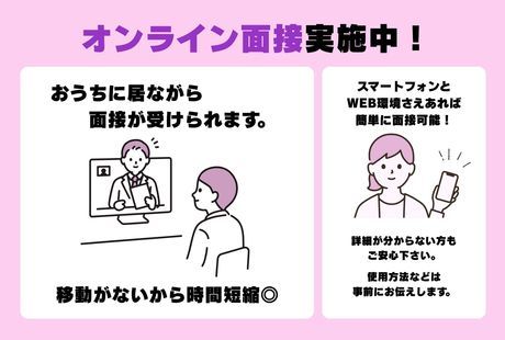 選考プロセス ▼応募後のご連絡について 下記いずれかの方法で 面接日調整のご連絡させて頂きます。 TEL 「0120 951 166」 Mail「world@rpms.jp」 SMS「241190」 または 「05088935576」 ▼オンライン面談実施中 スマートフォンとWEB環境さえあれば 自宅から簡単に面接可能! ZOOMという無料アプリを使用して面接を実施♪ ダウンロード方法や使用方法等は 事前にお伝えいたしますので 詳細が分からない方もご安心下さい。 ▼選考プロセス [面接] 面接会:履歴書不要、服装自由で参加OK (1)全体説明(約30分) 業務内容や就業条件などを説明 (2)個別面談(約10分) 不明点や希望を伺ってシフトを決定 [採否連絡] 即日~1週間以内にはお伝えします! [入社] 入社日当日はオリエンテーションと研修を行います。 ・入社書類のご提出 ・契約の締結 ・倉庫内で安全に就業頂くための説明会 ・実務研修 ※面接、入社日はご相談に応じます。 【問合せ先について】 問合せ先:0120-951-166 応募方法 面接日調整・・・電話・WEBから応募