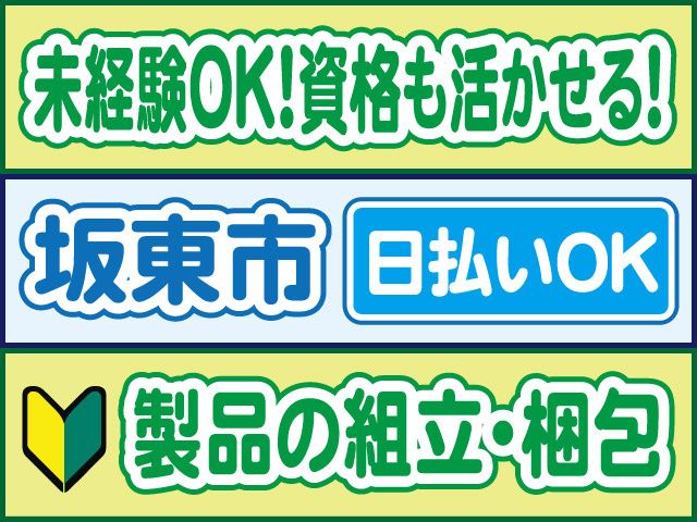 坂東市山/履歴書不要/日払いOK 日勤のみで高時給・長期休暇もあり 未経験OK/空調完備の工場内作業
