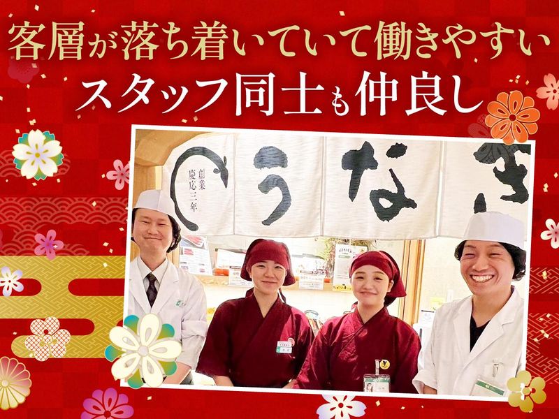 職場環境 「魚伊のうなぎはおいしい」と 全国レベルで有名なお店! 老舗ならではの堅苦しい雰囲気はなく スタッフも気さくなので、楽しく働けます♪