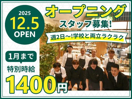 仕事内容 ◆ディナータイムのホールスタッフを募集中!◆ ★オープニング募集★ ★特別時給+100円の今がチャンス! ★みんな同じスタートだから安心して馴染めます! \オープニングだから雰囲気づくりから一緒に!/ ◎「みんなと同じスタートだから馴染めるか不安な方も安心です!」 ◎「立ち上げメンバーとして活躍いただけます!」 ◎「キレイでピカピカの職場で気持ちよく働けます♪」 <こんな方にピッタリです◎> ――――――――――――――――― ・部活やサークル、学業と両立させたい! ・料理や接客スキルを身につけたい! ・新しい仲間や友達が欲しい! ・レストランで働いて、食費を浮かせたい! ――――――――――――――――― ◆働きやすさのポイントはココ!◆ ――――――――――――――――― ★大手運営!未経験でも安心♪ ★2週間毎の希望シフト制♪ ★スタッフ同士の仲が良い職場♪ ――――――――――――――――― 12/5オープンのオシャレできれいなお店! 駅直結で徒歩3分の好立地です! ◆具体的なお仕事内容◆ ・お客様のご案内 ・オーダー ・お食事のご提供 ・お会計 ・お席の片付け など 未経験スタート大歓迎! はじめは先輩スタッフが丁寧に教えてくれますよ◎ ◆こんにちは!TO THE HERBSの採用担当です!◆ 年齢や経験にかかわらず 誰もが活躍できる環境が整っていますので、 接客が初めてという方も ぜひ、チェックしてみてくださいね! ◆TO THE HERBSとは◆ “身近”なイタリアンレストラン「TO THE HERBS(トゥザハーブズ)」は、 お子さま連れも気軽に訪れる、「雰囲気の良さ」が評判のピザとパスタがおいしいレストランです。 その雰囲気の良さに魅かれてバイトを始めたというスタッフ多数☆ ピザーラを展開するフォーシーズグループだから、安心して働けます!
