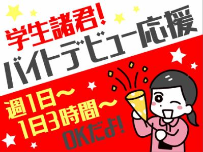 勤務時間詳細 17:00~21:30 ※上記時間以外も応相談! ☆週1日~1日3h~OK! ☆★学校終わり…等!!わがままシフトOK♪★ 「夕方から」「夜のみ」等、空いている 好きな時間に働ける♪(2週間毎シフト) ★半月毎の希望シフト制。あなた好みでわがままシフトOK♪ ★夕方からや、土日祝のみ空いた時間など好きな時間に◎ ★扶養内勤務OK!