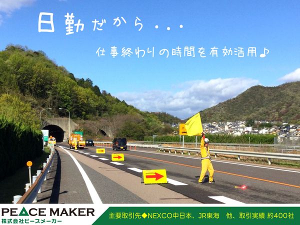 仕事内容 ▲▽▲▽▲▽▲▽▲▽▲▽▲▽▲▽▲ ✨電話でのご応募も大歓迎✨ お問い合わせだけでももちろんOK 「0533-72-7660」採用担当まで ▲▽▲▽▲▽▲▽▲▽▲▽▲▽▲▽▲ 【大手高速会社が取引相手の安定警備会社★】 高速道路や一般道路での交通規制や交通誘導をお願いします。 高速・一般道路警備の現場は、基本的に3~10名で回ります。 30~60分毎で交替だから立ちっぱなしの心配はなし◎ 一人で現場に入ることはありませんので、未経験の方でもご安心ください。