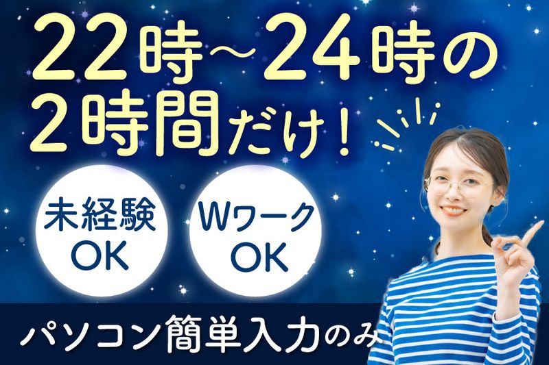 ≪夜間22~24時≫✅簡単な集計作業のみ✅週3~4日程度の勤務✅未経験OK✅副業・WワークOK!