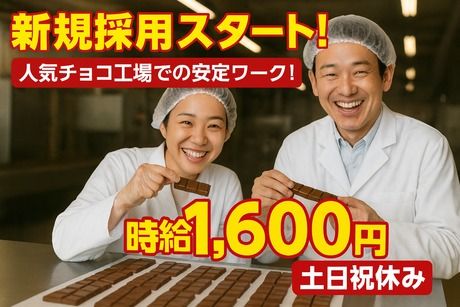 【即日~2・3月頃まで】高時給1600円×未経験OK!人気チョコレート工場で働こう!男性活躍中!