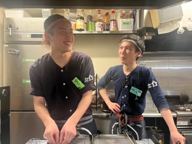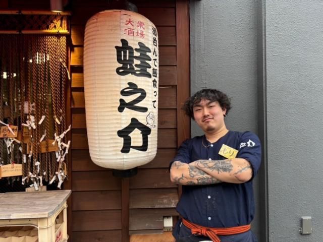 仕事情報 ● 仕事内容 SNSでも話題となり、老若男女問わず多くのお客様で連日賑わっている「蛙之介」! 「楽しいこと大好き!」という子ならみんな大歓迎! お客さんやスタッフと、元気に楽しく働きたいという気持ちさえあれば完璧です◎ 髪色も髭もタトゥーも自由なので、個性を大切にしながら働けますよ★ 店長は元デザイナーの23歳 ワイルドな見た目なのに、笑うと超可愛い(笑)スタッフ想いな店長のもりさん。 なんと元々はアルバイト!店長というより、頼れるお兄ちゃんって感じです! スタッフにもお客様にも、思いやりを持って働くことを何よりも大切にしているお店なので、 休みの日でも気づいたら集まって飲みに行くくらいスタッフ皆が超仲良し♪ 超仲良しなスタッフを紹介 のすけの太陽!女子力溢れるみんなのアイドル「のぞみ」(23) モジャモジャ頭がトレードマーク!愛されいじられキャラ「あさひ」(21) いつでも元気な地黒イケメン!「けんし」(21) など個性的な仲間が活躍中! 楽しすぎて最初は掛け持ちのつもりが、いつの間にか週5勤務になってた…!なんてスタッフも!(笑) 半年で時給100円UPも ステップアッププログラムという評価制度があり、スタッフの頑張りを還元する文化が整っています! 「ご来店時に大きな声で挨拶している!」「常連さんの名前を覚えている◎」など…日々の頑張りで時給もドンドンUP! 仕事内容 キッチン業務(仕込み・調理・洗い物など)をお任せ!