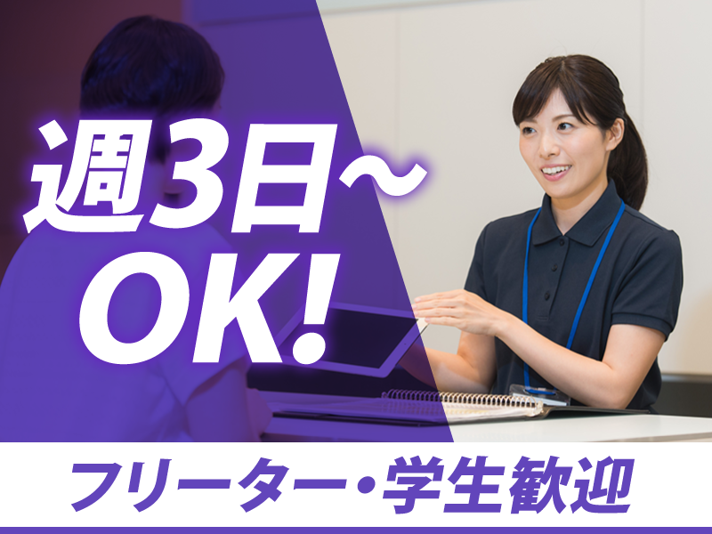 ジム利用無料!基本3名体制で安心<週3日、1日4時間~>