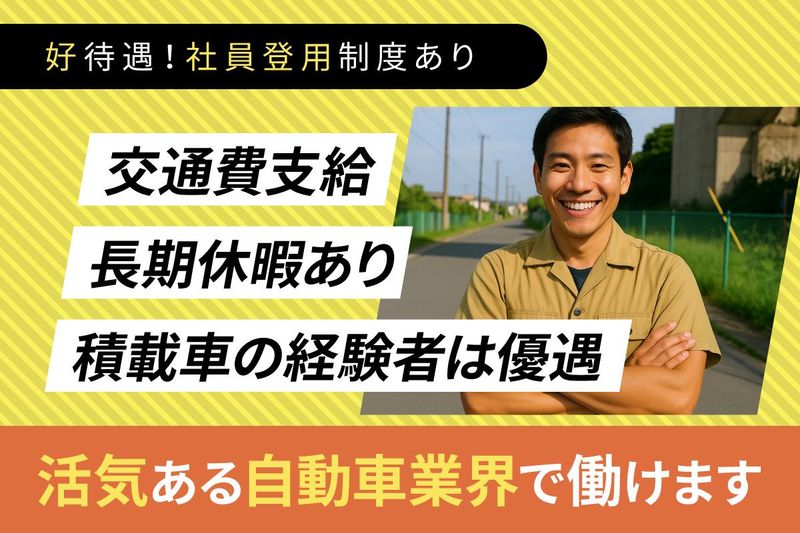 求めている人材 ✨趣味の延長で楽しそう! ✨自分にぴったりだ! ▶▶▶そう思った方はぜひご応募を♪ ◤ 普通免許ひとつで、 憧れのクルマの世界へ◢ 「運転が好き」 「洗車後のピカピカを見るのが快感」 そんなあなたの“好き”が、 立派なスキルになります。 ▍社員登用制度あり ……………………………………… 「ゆくゆくは社員になりたい」 「そろそろフリーター卒業したい」 「腰を据えて長く働きたい」 そんなあなたにピッタリな職場です★ ▍プロが伝授! ………………………………………… マンツーマンで運転のコツから 教えるので、未経験でも安心◎ ▍レア車に出会える!? ……………………………………… 毎日違う車に触れられるから、 車好きにはたまらない環境です。 ▍ジッとしてられない派に! ……………………………………… 適度に体を動かし、 リフレッシュしながら稼げます。 ▍キャリアカー経験者、大歓迎! ……………………………………… あなたの技術を、 最高の条件で優遇します。 < こんな方も大歓迎! > ・第二新卒の方 ・ブランクのある方 ・フリーター、Wワーカーさん ・主婦(夫)さん、学生さん