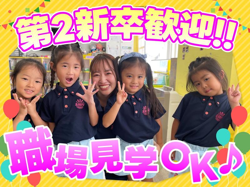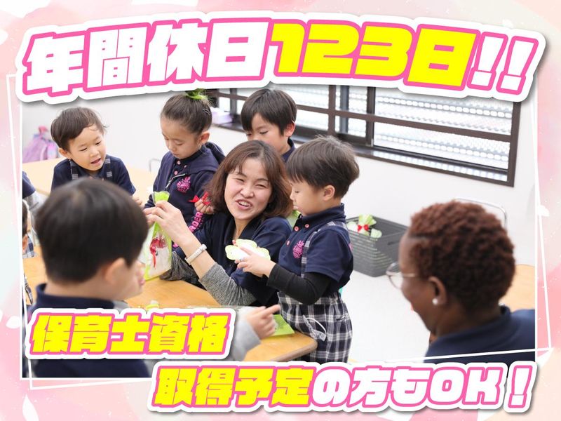 【保険制度】 雇用保険、労災保険、健康保険、厚生年金 待遇・福利厚生 【福利厚生】 ・社内研修あり(6か月) ※2024年~入職可能な方については、新校舎オープンまでの期間は ご自宅から通える範囲内の既存校舎にて実際のクラスに入っていただきながら トレーニングにご参加いただきます。 ※2025年4月以降入職をご希望の場合は、ご参加可能な範囲での校舎での業務研修、 3月最終週~4月初週にかけて実施される約2週間の研修にご参加いただきます。 ・新入社員1名につき1名の担当トレーナーを配置しているため 困ったことはすぐに聞ける頼りになる存在がそばにいます! 【主な研修・社内サポート例】 ー入社オリエンテーション ー入社後6カ月、1年の振返り面談 ーカリキュラム理解研修 ー保育知識研修(保育知識、保護者対応、クラスづくり) ー救命講習 ・無料英会話レッスンあり ノーボーダーズ日本人講師限定のベテラン外国人講師による 無料英会話レッスンで英語力UPを目指せます! ・制服貸与 ・社員割引あり ※年度ごとにご自宅から通勤頂ける範囲内で校舎異動の可能性がございます。