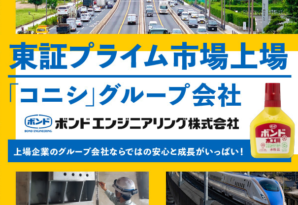 仕事内容 \\ この求人のポイント // ・…━━━☆・ …━━━☆・ …━━━☆ ✨親会社は”ボンド木工用”で有名! プライム市場上場企業グループ会社で 安定性抜群!13年連続増収増益 ✨年間休日125日/土日祝休み ✨毎年昇給&賞与年2回 (昨年実績:2.9か月分× 夏冬2回+決算賞与0.5か月分) ✨資格手当が最大月3万円 1級土木・建築施工管理技士:月2万円 2級土木・建築施工管理技士:月1万円 ✨人事考課制度が充実◎ 賞与考課により最大+15%UP ✨施工管理の58%以上が 年収600万円超え! 年収800万円以上も可! ✨建築物や公共工事現場の 土木・建築施工管理現場の 掛け持ち原則無し 基本一人1案件/直行直帰可/転勤なし ・…━━━☆・ …━━━☆・ …━━━☆ 【具体的には】 道路・橋梁・トンネル・鉄道、マンション、 商業施設、学校などのインフラの 補修・補強工事における、施工管理業務。 ★・…―━ <工事案件紹介>―━―…・・★ ・「⾼速道路」、「国道」等の 橋梁補修・補強⼯事 ・「東海道新幹線」トンネル改修⼯事 ・「⼤⼿スーパー」外壁耐震補強⼯事 ・「洋上⾵⼒発電」基礎⼯事 など 公共インフラのメンテナンスから、 大手民間企業の耐震補強工事など 技術やノウハウを駆使して様々な案件を 取り扱っております。 ★・‥…―━―…‥・‥…―━―…‥・・★ <⼯事内容> ・⼟⽊構造物・建築構造物の補修・補強 ・ひび割れ補修⼯ ・断⾯修復⼯ ・コンクリート⽚はく落防⽌⼯ ・落橋防⽌⼯ ・⽀承補修⼯ ・伸縮継⼿装置補修⼯ ・連続繊維シート補強⼯ ・外壁改修補修⼯ など 現場監督として、施工計画の立案から 現場の安全・品質・工程管理まで、 工事全体を統括する重要な役割を 担っていただきます。 ※⼯法や施⼯実績など、 詳しくは当社HPをご覧ください。 https://www.bond-eng.co.jp/ ✅入社後は  ̄ ̄V ̄ ̄ ̄ ̄ ̄ ̄ ̄ ̄ ̄ ̄ ̄ ̄ ̄ 経験がある方でも不安があると思います。 最初から一人で 放り出すようなことはありません。 先輩の現場に一緒に入り、 慣れてきた段階で徐々に任せていきます。 ✅残業少なめ・サポート体制充実  ̄ ̄V ̄ ̄ ̄ ̄ ̄ ̄ ̄ ̄ ̄ ̄ ̄ ̄ ̄ ・原則掛け持ちなし 一人一現場で原則掛け持ちはありません。 ・サポート体制 積算は営業、資材発注や資料作成は 事務がサポートするため 事務作業に時間をとられることが少ないため 残業も少なく抑えられています。 1人1台、スマホとパソコンを貸与。 チャットアプリを使用し、 迅速で正確な情報共有ができます。 ✅大型案件にも携われる  ̄ ̄V ̄ ̄ ̄ ̄ ̄ ̄ ̄ ̄ ̄ ̄ ̄ ̄ ̄ 施工期間は半年から1年が多く 受注額が数億円の 大規模案件に携わることもできるので 確実にスキルアップできます。 ✅新規プロジェクト進行中  ̄ ̄V ̄ ̄ ̄ ̄ ̄ ̄ ̄ ̄ ̄ ̄ ̄ ̄ ̄ 再生可能エネルギーのひとつとして 国が力を入れているビッグプロジェクト である洋上風力発電事業にも 力を入れています。 風力発電に不可欠な風車の基礎部分に グラウトを注入する工事で20~30年という 長期にわたり実施される大規模事業です。 このプロジェクトに技術者として 携われる可能性も高く スキルアップするチャンスもあります。 ▼主要取引先 ▼ ・・━━・・━━・・━━・・━━・・ 国土交通省 都道府県自治体 市町村自治体 NEXCO東日本 NEXCO中日本 NEXCO西日本 名工建設株式会社 東鉄工業株式会社 ジェイアール東海建設株式会社 株式会社竹中工務店 株式会社大林組 株式会社熊谷組 西松建設株式会社 TSUCHIYA株式会社 ライト工業株式会社 日特建設株式会社 株式会社淺沼組 他 ・・━━・・━━・・━━・・━━・・ ┏─────────┓ ☆ 社員インタビュー ☆ ┗─────────┛ ⏩施工管理経験がある方へ  ̄ ̄ ̄ ̄ ̄ ̄ ̄ ̄ ̄ ̄ ̄ ̄ ̄ ̄ ̄ ̄ ̄ ̄ ̄ 今まで多方面とのやり取りが できていた方なら活躍できると思います。 特殊な工法の現場がある為、 知識や経験も必要ですが コミュニケーション能力が高いと 更に活躍できると思います。 「この先も地図に残すことができる仕事」に 携わるやりがいが感じられます。 施工管理/前職:施工管理 ⏩会社の将来性と個人の自由性が とても魅力的  ̄ ̄ ̄ ̄ ̄ ̄ ̄ ̄ ̄ ̄ ̄ ̄ ̄ ̄ ̄ ̄ ̄ ̄ ̄ 土木の施工管理がやりたいと思ったこと、 家族がいるので、福利厚生が 充実しているところを探していました。 会社の将来性はもちろん、 コニシの子会社として接着工法としての 特殊工事の知識が得られることも 魅力に感じました。 施工管理/前職:施工管理 ⏩ぜひお会いしましょう  ̄ ̄ ̄ ̄ ̄ ̄ ̄ ̄ ̄ ̄ ̄ ̄ ̄ ̄ ̄ ̄ ̄ ̄ ̄ 上場企業の安定性と、独自工法を持つ強み、 また社会的に必要不可欠な分野だけに 今後、ますます発展していきます。 スキルアップしたい、イチから学びたい、 安定収入を手に入れたいなど 何でも大丈夫。それらが手に入る環境です。 採用担当
