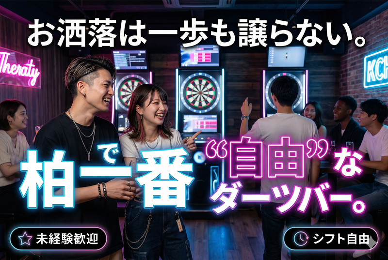 仕事内容 ╭━━━━━━━━━━━━━━━━━╮ ✨“好きな自分のまま”働ける✨ ダーツバー スタッフ募集中! ╰━━━━━━━━v━━━━━━━━╯ / 見た目のルールはなし♪お洒落も楽しも♪ \ ⭐髪型/カラー自由!! ⭐ネイル/ピアスOK♪ → 個性をそのまま活かせる職場★ スカルプも金髪もALLOK! / お店のスタイル \ 「経験」より「人柄」を重視! ~ こんな方にぴったり ~ ✅明るい対応できる ✅初対面でも会話が弾む ✅その場を楽しませるのが好き ⭐女性スタッフも多数在籍 ⭐人と話すのが好きな方歓迎 ⭐イベントや季節企画も豊富 → 働く時間そのものが楽しい環境 / 仕事内容 \ ◉ドリンク作成 → シンプルで覚えやすい ◉接客対応 → 注文受付やご案内 ◉フードの簡単な準備 → 盛り付け中心 ◉お客様とのコミュニケーション → ゲーム提案や会話で盛り上げ ◉イベントサポート → 装飾や企画の手伝い / 未経験でも安心 \ ◆丁寧なサポート体制あり ◆初めてでもすぐに馴染める環境 ➡「楽しく働きたい」その気持ちだけでOK!