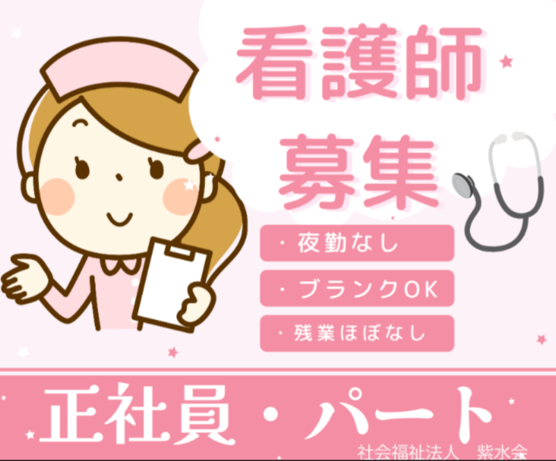仕事内容 \健康管理がメインの看護師/ *家庭を第一に働けます! *週2日~、1日3h~OK!WワークOk! *お子様の急な発熱や学校行事はお休みOK! *家庭と両立ができるように全力でサポートします♪ *施設が初めてやブランクがある方も大歓迎です◎ ━━━━━━━━━━━━━━━━━━━━ 基本業務は入居者様の体温や血圧測定などの健康管理や 薬の管理、投薬などです。入居者様1人1人と顔を合わせて 毎日の体調管理をお願いします。 総合病院などとは違い、特養での看護師は治療ではなく 利用者様の生活を支える業務となります。 クリニックなどよりも比較的ゆったりとした空気の中で 看護師として働きながら、しっかりプライベートの時間を 確保して働くことができる環境です。 実はイメージと違う看護師業務━━━━ ①医療依存度低め! ※喀痰吸引、点滴、血糖測定が常に必要な人はいません ②夜勤なし×中抜けなし×残業なし! ③介護業務一切なし◎ ④基本、何かあれば病院受診するので負担少なめ◎ \利用者様の心のケアを大事にしている施設です◎/ 医療依存度も低い施設です◎ 健康管理がメインとなっております♪ 利用者様の心のケアをメインで 寄り添って看護してくださる方大歓迎です♪ 未経験・無資格の方も大歓迎! 家庭と両立できるようにサポートします!━━━━ <ママさんが働きやすいPOINT!> ①お子様の急な発熱や学校行事などシフト調整OKです◎ 家庭の両立が1番大事だと考えているので お気軽にご相談くださいね! ②扶養内勤務・保育無償対象など施設で勤務日数計算します! ③スキマ時間で働ける! 週2日~、1日3h~OKです! 例えば9時~14時などお子様が学校や保育園へ 行っている間だけなどももちろんOKです! お子様の発熱など急なお休みも 職員同士お互いに協力しあいながら 働いているのでママさんも働きやすい環境です! もう少し少ない時間から始めたいなどは 相談に乗るので教えてくださいね♪ 病棟から施設に転職した看護師さんに どうして紫水会の高齢者施設の看護師になったのか インタビューしてみました!━━━━ 「病棟で働いていた時は夜勤や急患などで忙しく働いていました。 そんな中で昼夜逆転・激務で体調を崩してしまったんです... 気づいたら精神的も限界が来ていました。 でも”看護”という仕事が好きなので、 ちゃんと看護ができる業界を探していました! そんな時に高齢者施設の看護師という仕事と出会いました! 紫水会の看護師は夜勤はなく 時間にも追われることがなく働けると思い、応募をしました。 実際に働いてみると夜勤がないのはもちろん、 時間に追われることはなく ひとりひとりの利用者様に向き合って”看護”ができています! 面接時や面接前に施設の見学ができたのもとてもよかったです! 前職を体調不良で辞めていたので、 新しい職場をしっかり自分の目で見ることができたことも安心できました! 紫水会は施設もたくさんあるので、 ライフスタイルにともなう異動などもしやすいのもいいです◎ 旦那さんの転勤で違う施設に異動する方もいらっしゃいますよ! ━━━━━━━━━━━━━━━━━━━━━━━━━ 【よくある質問にお答えします!】 ━━∨━━━━━━━━━━━━━━━━━━━━━━ Q「3月オープンですが、いつから瀬戸の施設で働けますか?」 A「2月の後半から新施設の見学ができます! 3月からは新施設で働くことができます◎ それまでは近隣の施設での勤務も可能です!」 Q「車通勤はできますか?」 A「はい!車・バイク通勤も可能です◎」 Q「ブランクがあるんですが大丈夫ですか?」 A「ブランクがある方も大歓迎です! 10年ぐらいブランクがある方もいらっしゃいます!」